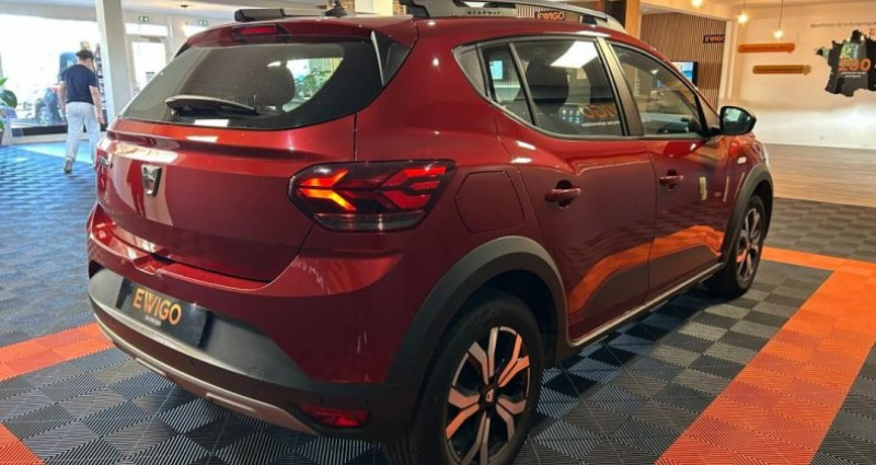 dacia sandero stepway 1.0 tce 90 confort + camÉra de recul + apple carplay/android auto +entretiens dacia berline, rouge, 5 cv, 5 portes, première mise en circulation le 30/06/2022. - nos services et prestations complÉmentaires - - visite virtuelle : avant de vous déplacer, visualisez votre futur véhicule sous toutes ses coutures . contactez-nous pour en voir plus ! - extension de garantie jusqu'à 60 mois. - solutions de financement de 12 à 84 mois. - livraison dans toute la france métropolitaine (sur devis). - reprise possible de votre ancien véhicule. - les informations délivrées par cette annonce sont non contractuelles et données à titre indicatif. packs disponibles (véhicules éligibles au label) - pack clés en main - 691 € ttc(¹)(²) démarches (hors carte grise) | 1/4 de carburant | nettoyage first | garantie 6 mois | label inclus? - pack sérénité - 891 € ttc(¹)(²) démarches (hors carte grise) | 1/2 de carburant | nettoyage confort | garantie 12 mois | label inclus? - pack prestige - 1.091 € ttc(¹)(²) démarches (hors carte grise) | plein complet | nettoyage prestige | garantie 12 mois | label inclus? + surprise du chef - (¹) les véhicules non éligibles au label bénéficient de tarifs préférentiels. veuillez contacter votre conseiller pour obtenir les conditions tarifaires applicables. (²) tarif pour les véhicules deux roues motrices dont la valeur de vente est inférieure à 60 000 € ttc. - véhicule visible sur rendez vous 5 places options et Équipements : audio - télécommunications : - android auto - apple carplay - reconnaissance vocale - bluetooth - prise audio usb - radio numérique conduite : - accès main libre - boîte de vitesse manuelle - différentiel autobloquant - détecteur de pluie - essuies glaces automatiques - frein de parking auto - frein de parking électrique - système d'accès sans clé - accès et démarrage sans clé - stop & start - allumage automatique des feux - clé mains-libres - démarrage sans clé - détecteur de pluie - limiteur de vitesse extérieur : - capteurs d'aide au stationnement arrière - capteurs d'aide au stationnement avant - rétroviseurs latéraux électriques - barres de toit - caméra de recul - jantes : aluminium - jantes alliage - phares à led - système d'aide au stationnement intérieur : - porte gobelet avant - accoudoir central - banquette 1/3 - 2/3 - climatisation : manuelle - climatisation manuelle - direction assistée - vitres électriques - volant réglable hauteur - volant réglable profondeur pack : - intérieur tissu - mode eco - pneus été - sièges arrières 1/3 - 2/3 - détecteur de lumière - nombre de rapports : 6 vitesses - volant multifonctions - volant réglable - Écran multifonction sécurité : - airbags - antibrouillards avant - anti-patinage - avertisseur d'angle mort - fixations isofix - phares antibrouillard - roue de secours autres équipements et informations : - carnet d'entretien - double des clés - entretien constructeur - mode normal - classe crit'air : 1 - puissance kilowatt : 67 kw - usb - puissance réelle : 91 ch - émission co2 : 113 g/km référence annonce : d149484